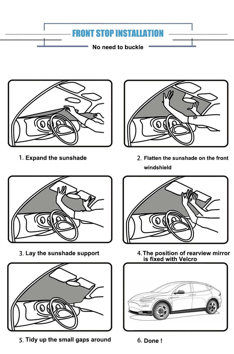 Aangepaste pasvorm, eenvoudige pasvorm, eenvoudige installatie, opvouwbaar, volledige zichtbaarheid, hittebescherming, lichtgewicht, bescherming tegen de zon, UV-bescherming