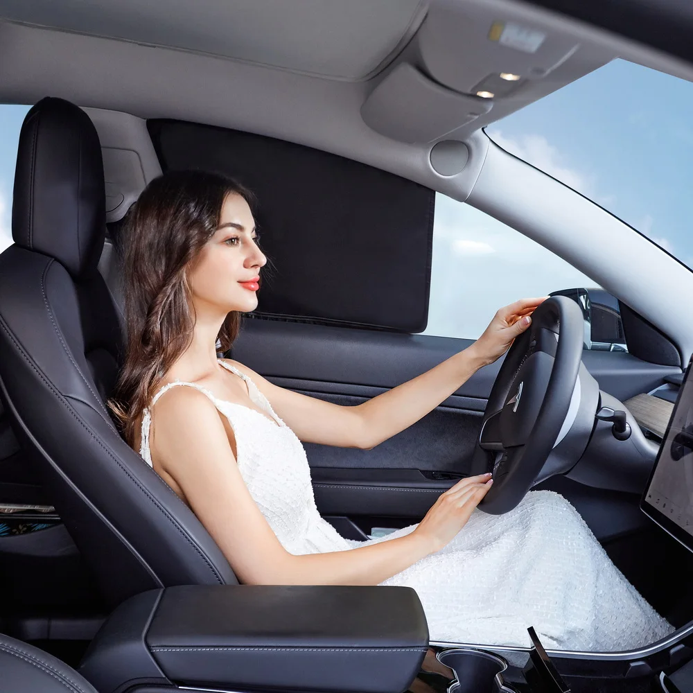 Auto Zonnescherm voor Tesla Model 3 Y LANCERING 2024 2025 Voorruit Zonnescherm Cover Protector Voorkant Venster Privacy Blind Shading