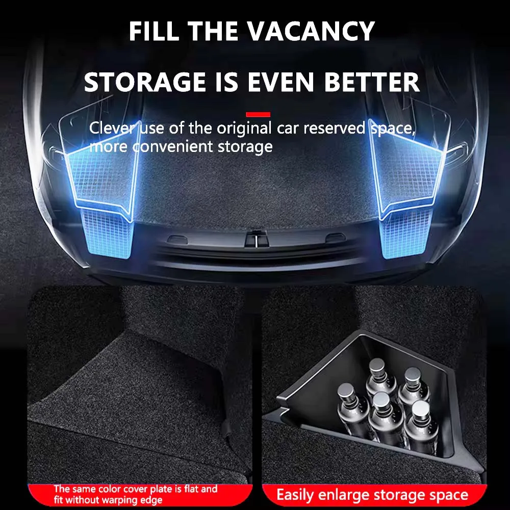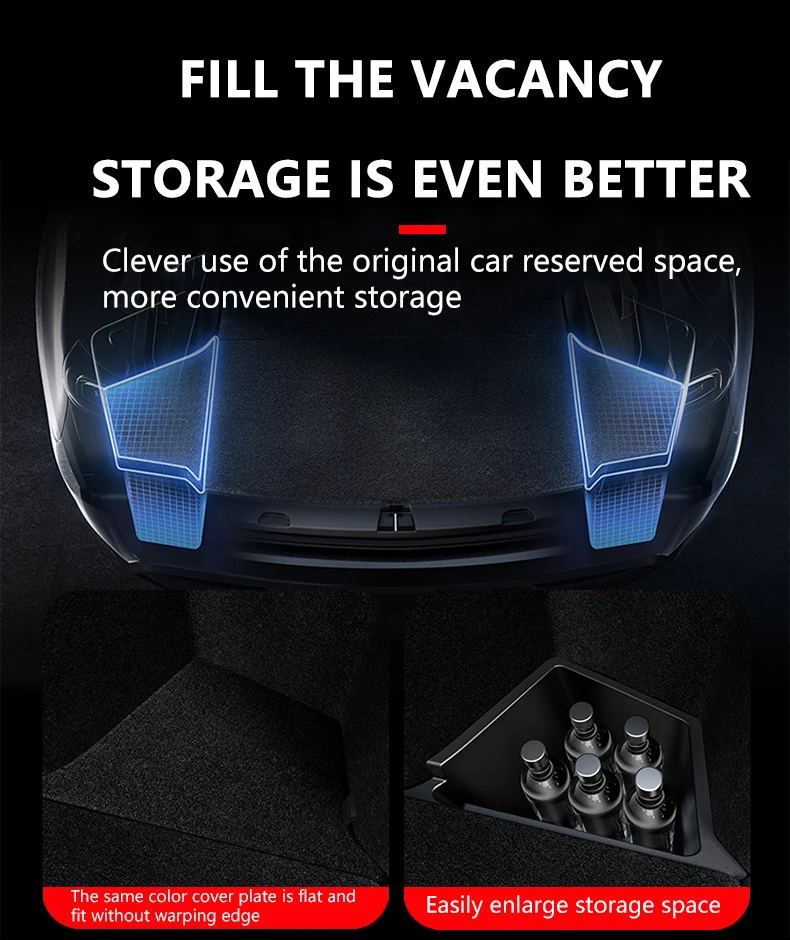 • COMPLETE MODEL Y TRUNK: Perfect op elkaar afgestemde kofferbakopbergdozen maken uw model y compleet; Bijpassende deksels met tapijt vergroten de ruimte in de bagageruimte en voorkomen dat items diepe groeven naar beneden rollen; Slim ontwerp maakt uw auto schoner en overzichtelijker.