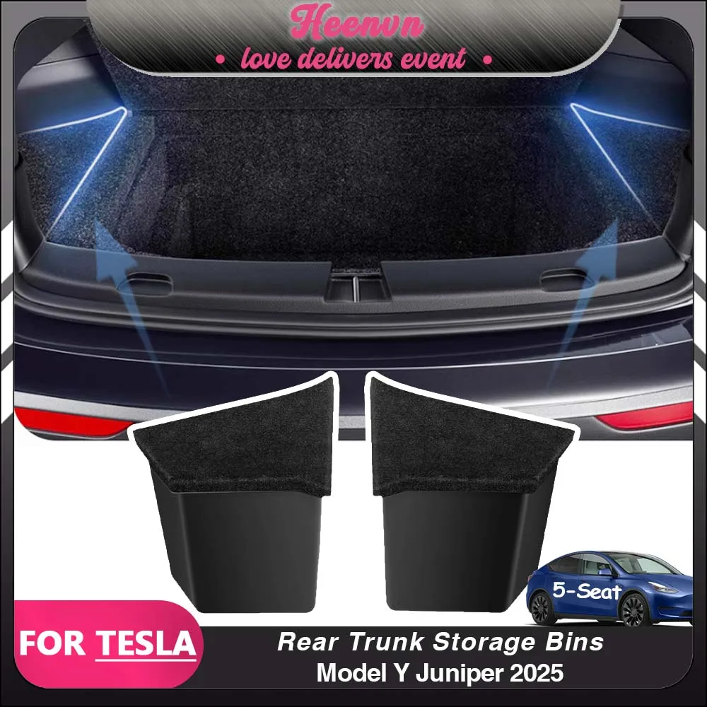 Kofferbakzijde opbergbakken voor Tesla Model Y Juniper 2025 Cargo Compartiment Organizer Emmer TPE Box Tapijt Deksels Auto Accessoires Model 3 Highland Kofferbak Opbergdoos achter