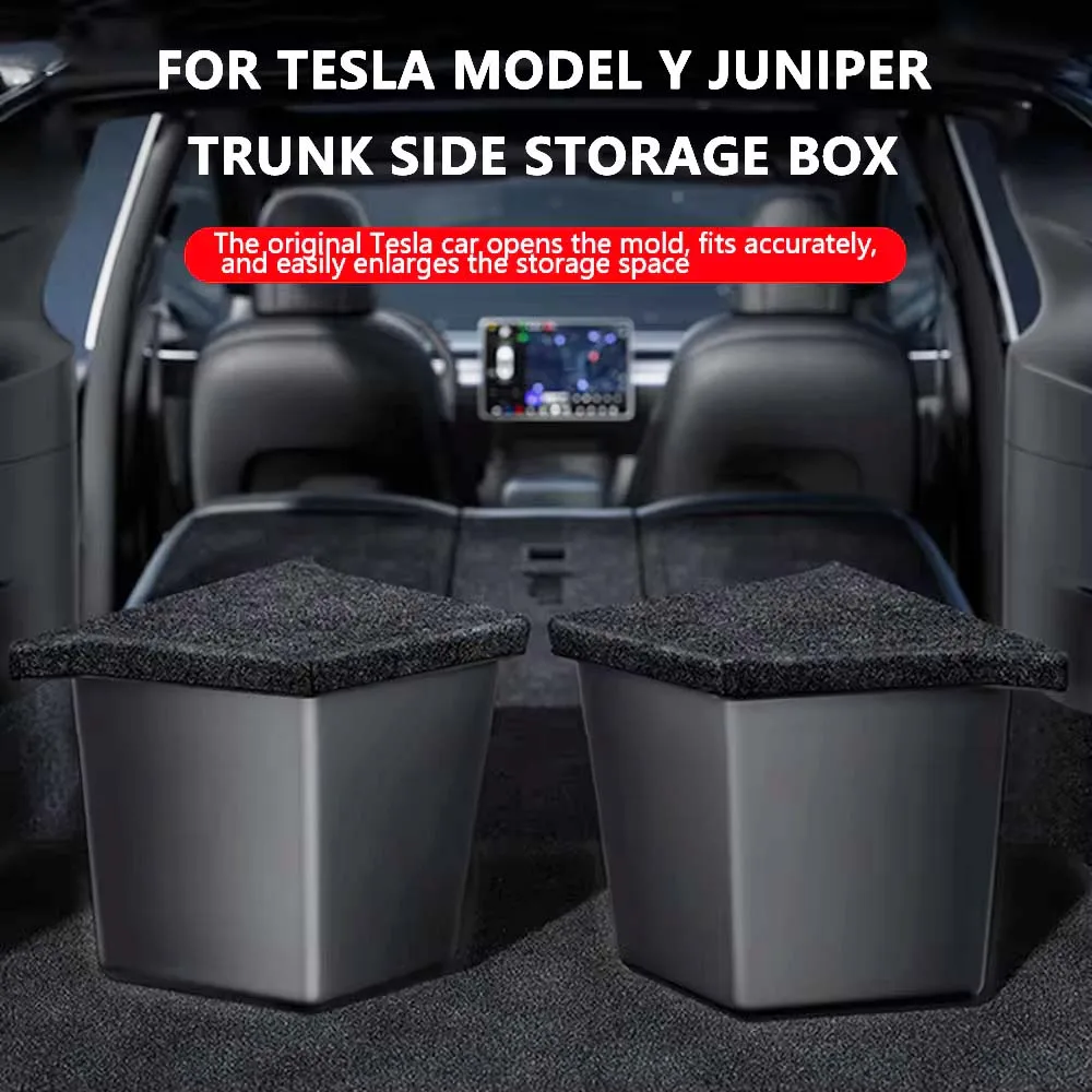 Kofferbak Side Opbergbakken Voor Tesla Model Y Juniper 2025 Lading Compartiment Organizer Emmer TPE Doos Tapijt Deksels Auto accessoires