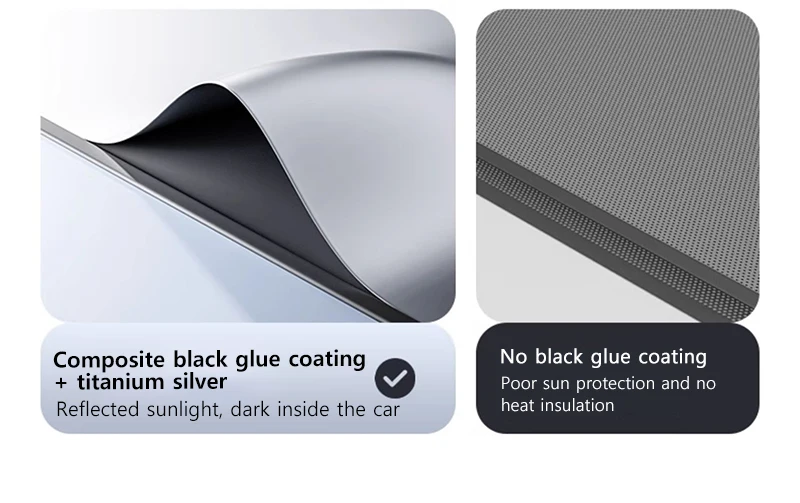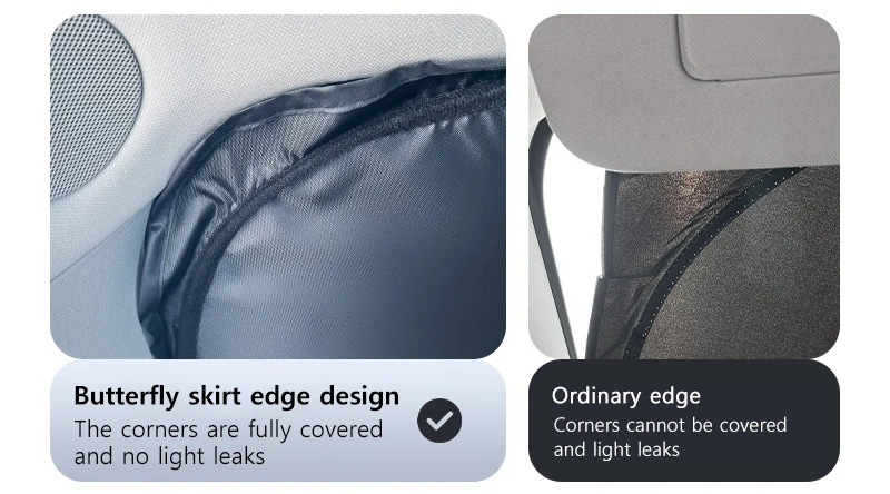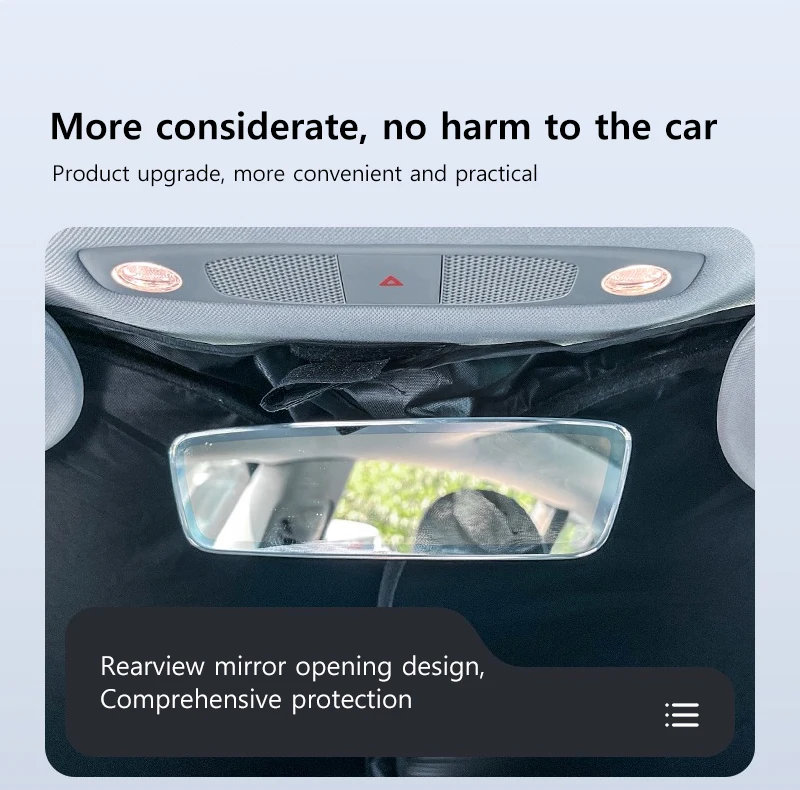 2-laags isolatie: in tegenstelling tot andere producten op de markt gebruiken we een dubbele laag hitteschildstof om de zon buiten te houden. De eerste laag is premium 210T reflecterend polyester en de tweede laag is van hoogwaardige stof. Deze dubbele isolatie biedt superieure bescherming en zorgt ervoor dat uw Tesla Model 3 Highland (2024) koel blijft.