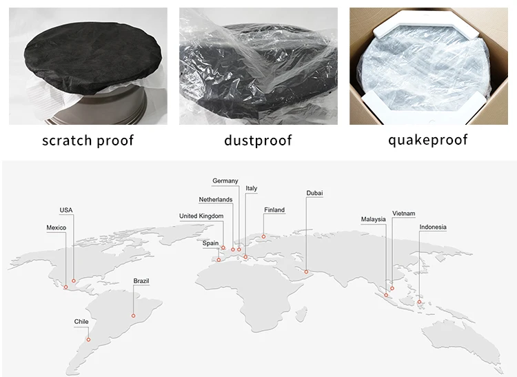 Vraag 1: Hoe waarborgt u de kwaliteit? A: We doen 100% tests om ervoor te zorgen dat elke wielnaaf van hoge kwaliteit is. Q2: Hoe lang is uw levertijd? A: Over het algemeen duurt het 15 dagen voor één stuk en 25 dagen voor twee stukken na ontvangst van uw vooruitbetaling. De specifieke levertijd is afhankelijk van de artikelen en de hoeveelheid van uw bestelling. Q3: Welke informatie moet ik verstrekken voor een offerte? A: Meestal moeten we het model van uw auto kennen en de wieldiameterbreedte PCD, CB, ABS voor een snelle offerte. Vraag 4: Wanneer kan ik de prijs krijgen? A: Gemiddeld sturen wij u de offerte binnen 4 uur nadat we uw aanvraag hebben ontvangen. Q5: Accepteert u OEM- of ODM-bestellingen? A: Wij accepteren OEM, ODM met het logo van de klant en het uiterlijk van de hub. Q6: Wat is uw MOQ? EEN: Eén stuk. Vraag 7: Hoe zorg je voor het effect/uiterlijk van de velg wat ik wil? A: We hebben een professioneel ontwerpteam. Voordat we de velgen produceren, zullen we een 3D-ontwerptekening tekenen op basis van uw vereisten en uw autogegevens. Nadat u het effect hebt bevestigd en zullen de gegevens onze productie begonnen. Vraag 8: Welke betaling ondersteunt u? A: We raden u aan een bestelling te plaatsen via Alibaba Trade Assurance, dit minimaliseert het risico door geld terug te garanderen in het geval dat een leverancier niet aan de voorwaarden van het bestelcontract voldoet, inclusief vertragingen bij levering, kwaliteits- en kwantiteitsverschillen of andere verwerkingsproblemen.