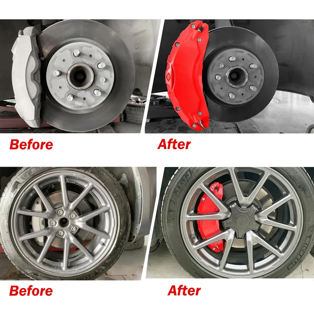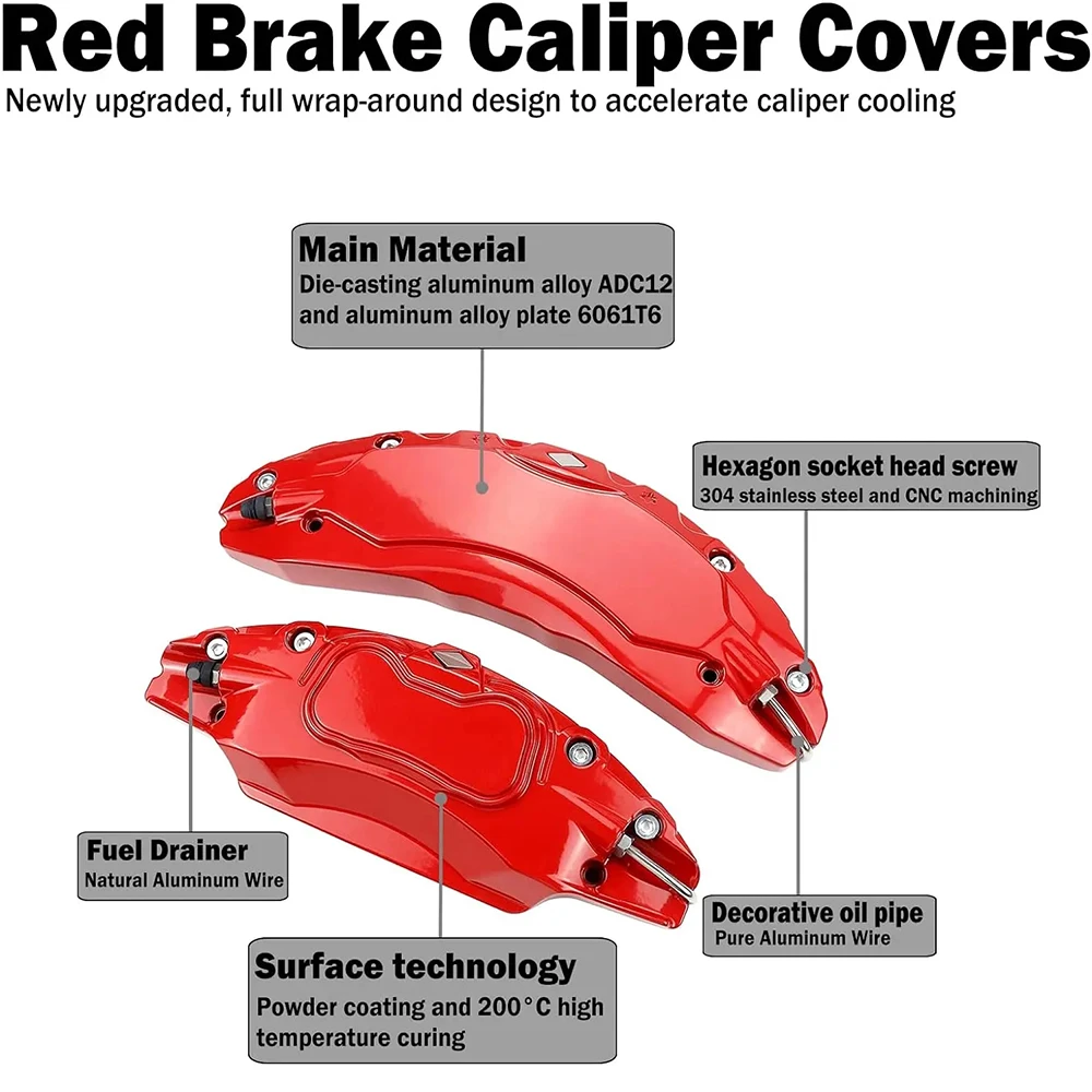 – Red brake caliper covers are outlined like real calipers, they simply slide over your stock calipers. High-performance caliper covers provide a “big brake” racing look that will catch people’s attention.