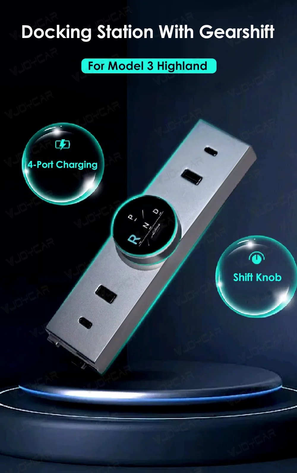 Voor Tesla Model 3 Highland LCD Versnellingspookknop USB Type-C Poorten Hoge Prestaties Plug en Play 2-in-1 Charge & Shift Knop