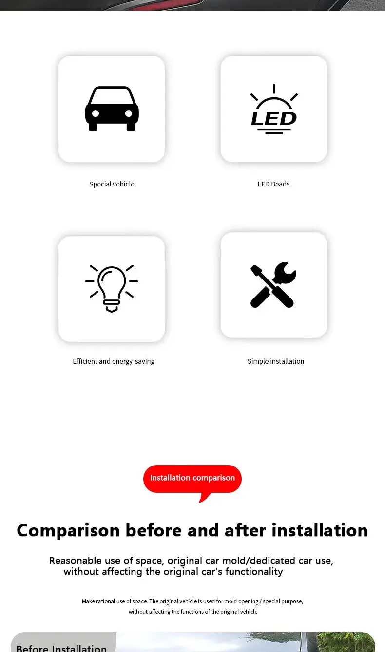 Gemodificeerde producten kunnen geen perfecte naadloze installatie garanderen, zelfs voor verschillende voertuigen zijn de gaten na installatie mogelijk niet hetzelfde.Als u dit erg vindt, plaats dan uw bestelling met voorzichtigheid.Gemodificeerde producten hebben mogelijk niet noodzakelijkerwijs lokale certificering. Begrijp de relevante wetten en bevestig dit voordat u koopt.
