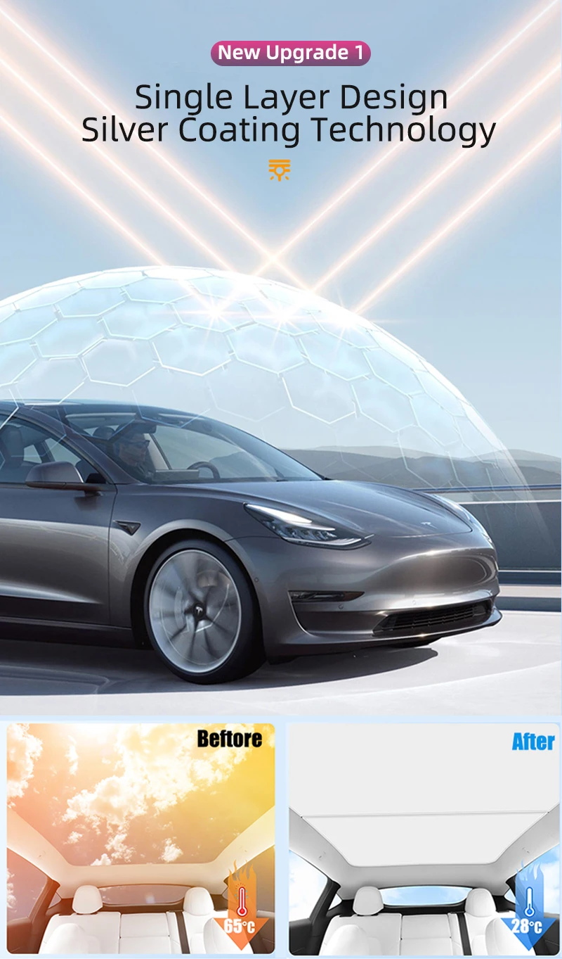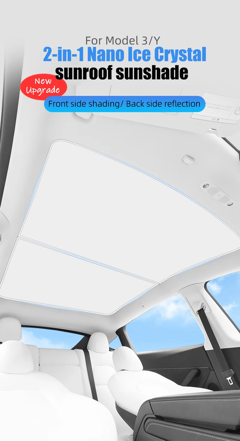 2023 nieuwe upgrade glazen dakzonnescherm verlaagt de binnentemperatuur van de auto door de warmteoverdracht in de cabine te verminderen door tweederde thermische zonnebelasting te blokkeren.
