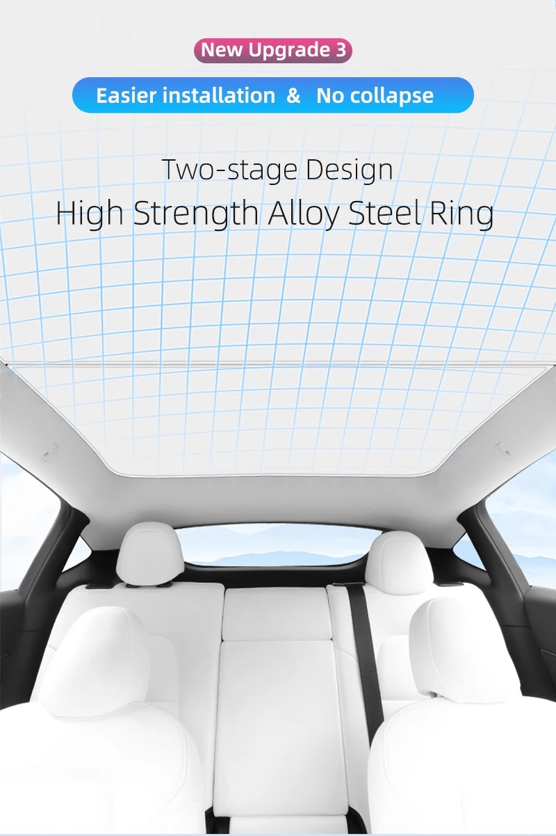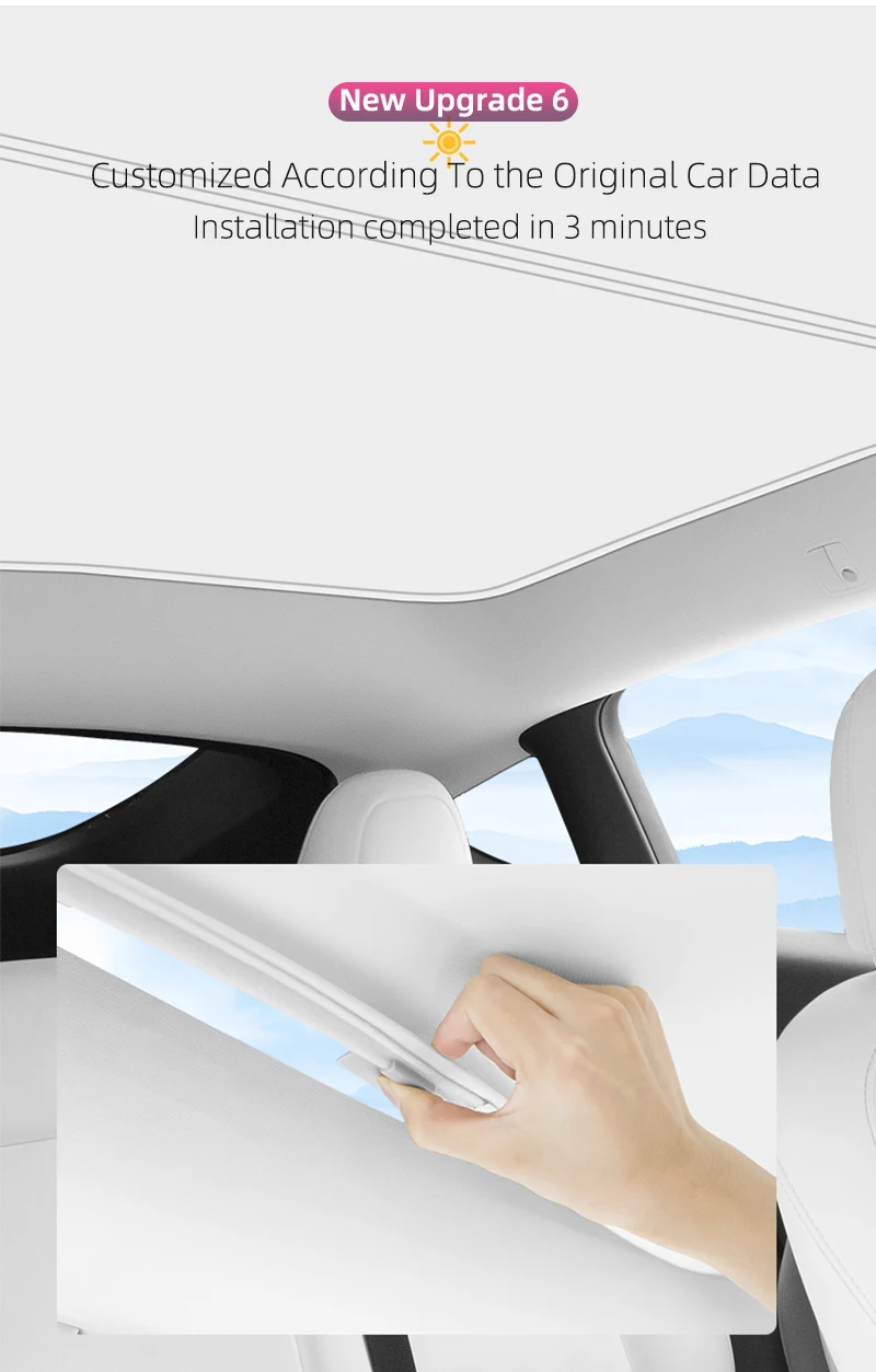 Het frame van het glazen dakzonnescherm is gemaakt van gelegeerd mangaanstaal, dat niet gemakkelijk vervormt.Het schaduwnet is gemaakt van 6 lagen composietmateriaal.Het vermindert effectief UV-stralen en warmtestraling en verlaagt de temperatuur in de auto zonder de minimalistische stijl van de auto te veranderen.