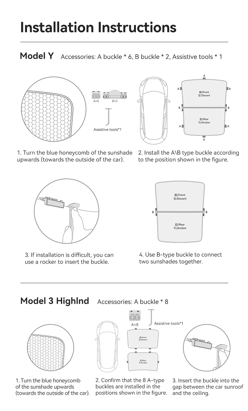 Houd er rekening mee: de installatiemethoden van Model Y en Model 3 Highland zijn verschillend. De hoofdvideo toont de installatievideo van het zonnescherm van Model Y, terwijl de onderste video de installatievideo van Model 3 Highland laat zien!